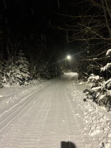 In the off-season, we completed our lighting extension project, which now has the entire 5k outer loop lit, giving us 7.5k of continuous lit trail – the 5k and the 3k loops. The lights come on at 4:45pm and turn off around 10:30pm (don’t hold me to that… aim for 10 but it could be 11). We are waiting to update our timer system so that it also comes on in the morning, we will post when that is in effect. According to the internet, it’s somewhere between the longest continuous system in Eastern Canada and North America… we aren’t sure? Canmore is 7k continuous…